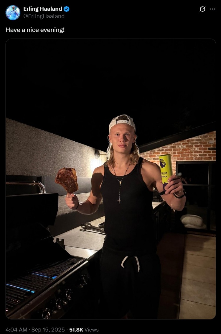哈兰德社媒写道:祝你今晚愉快!足球大数据ai智能推荐软件