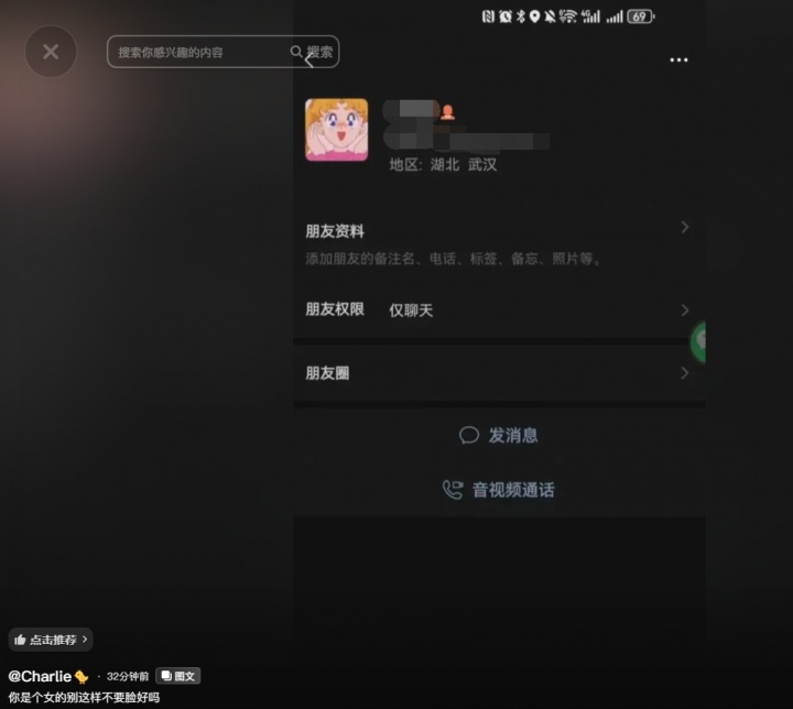 09月18日讯 今日深圳新鹏城球员杨一鸣突然在自己的社媒发出了一张某女性微信资料页的截图,并配文:你是个女的别这样不要脸好吗。