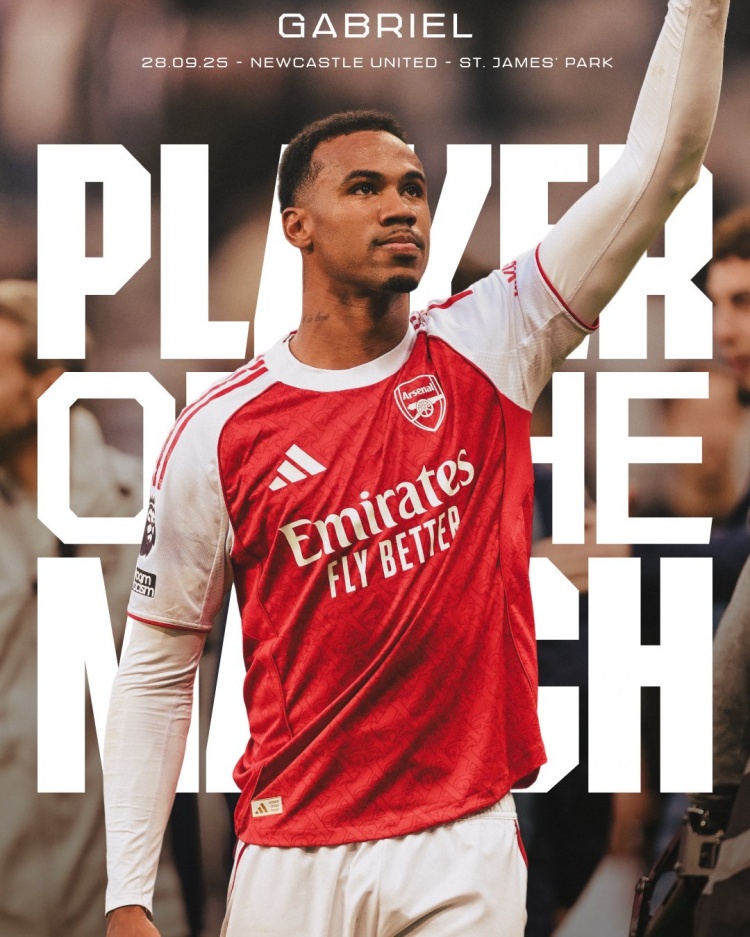 补时致胜球 !加布里埃尔当选对阵纽卡一役阿森纳队内最佳球员