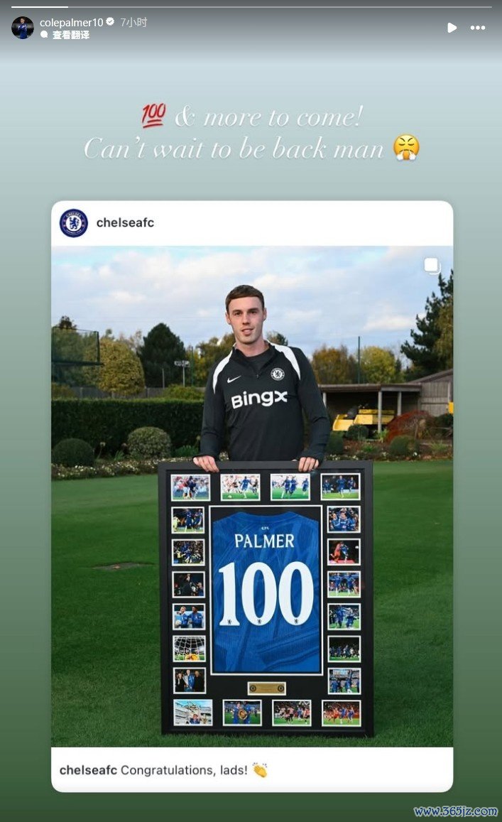 帕尔默写道:“100场!接下来还有更多!哥们我已经等不及要回归赛场了!”足球投注足球投注app推荐